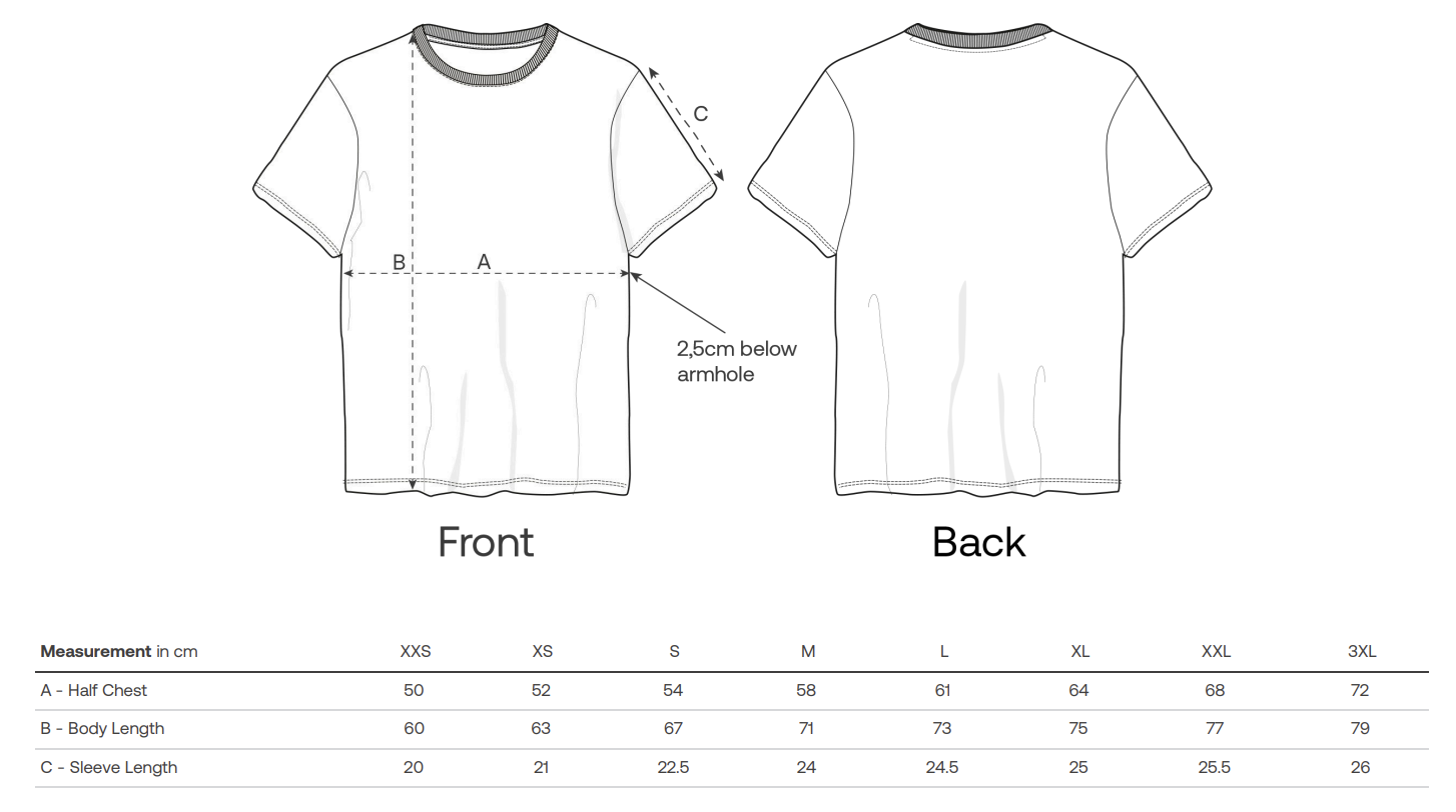 100% Organic cotton combed ringspun. Iconic mid-light unisex t-shirt. Relaxed fit. Set-in sleeve. 1x1 rib at neck collar. Inside back neck tape in self-fabric. Twin-needle topstitch at sleeve cuff and hem.